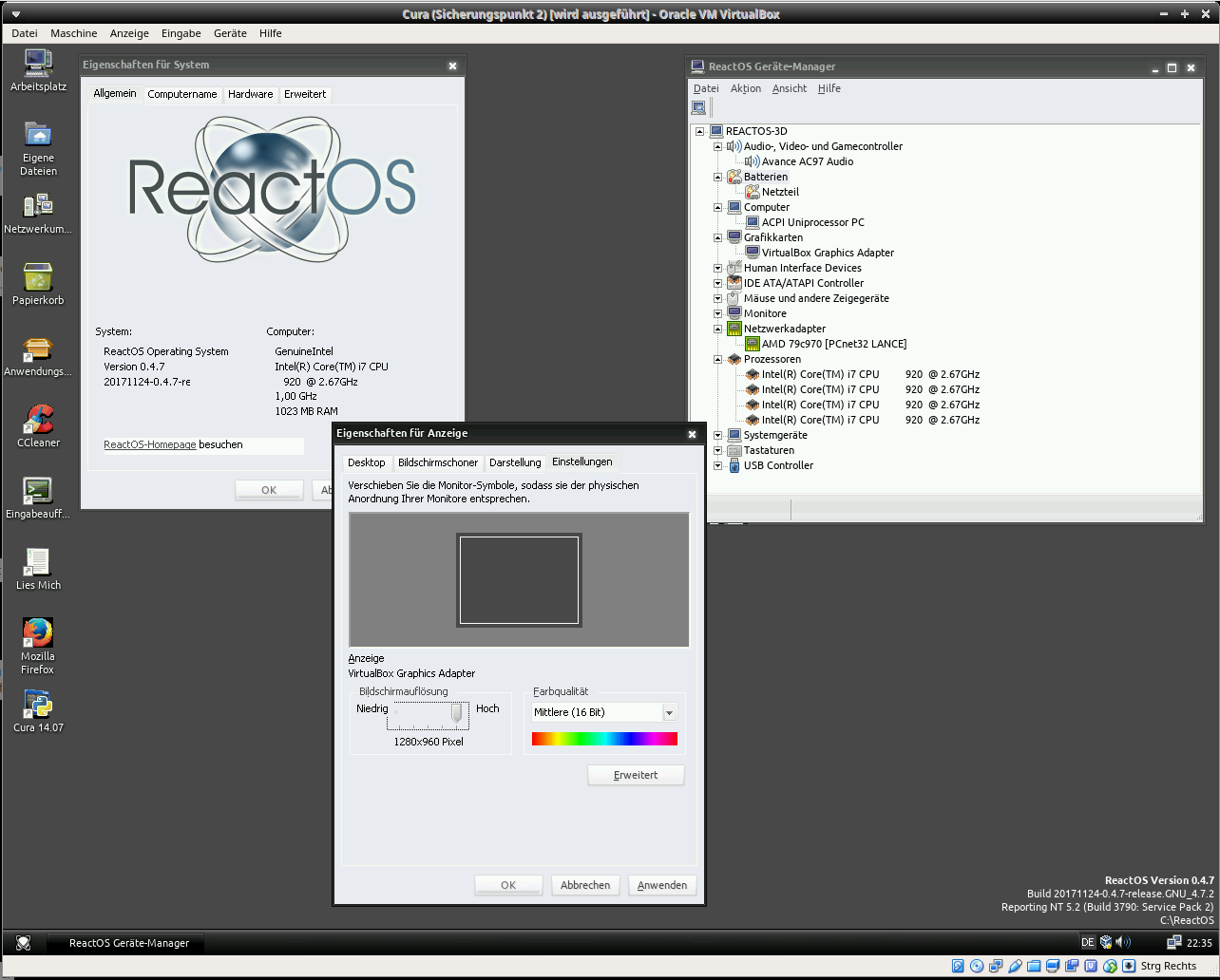 Cura 14.07 Start unter ReactOS
