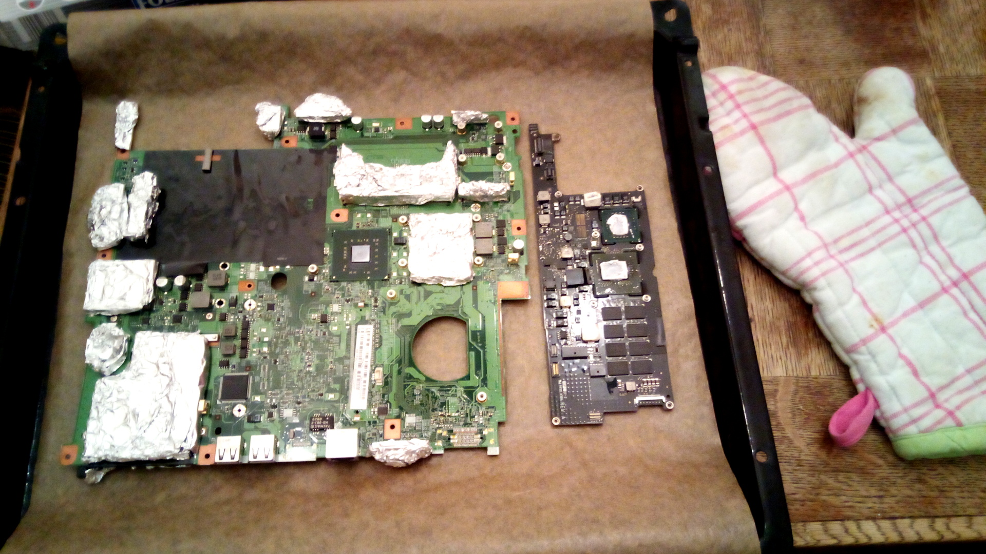 Am 20.11.2017 konnte ich nach über einem Jahr das MacBook Air im Backofen reparieren. (siehe Bilder unten)