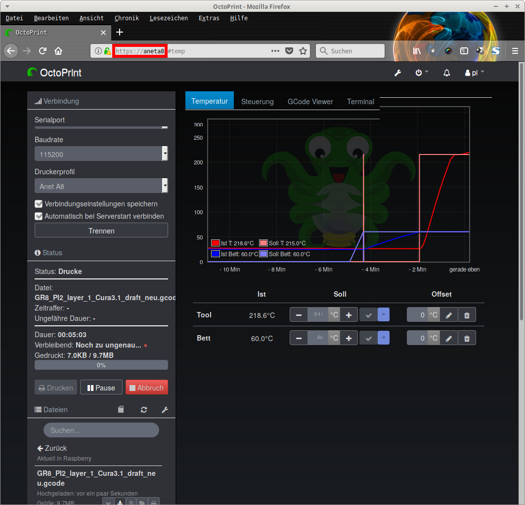 Für Android gibt es auch eine App um via OctoPrint den Anet A8 zu steuern und zu überwachen.