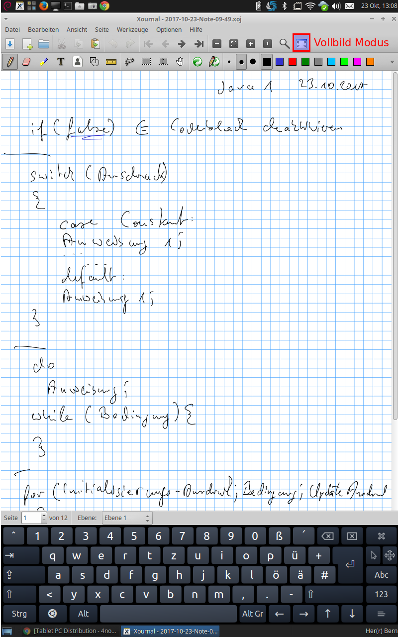 xrandr -o inverted Wer gerne im Hochformat schreibt muss noch die Ausrichtung des Wacom Tablet drehen unter "Anwendungen > Einstellungen > Maus und Touchpad"