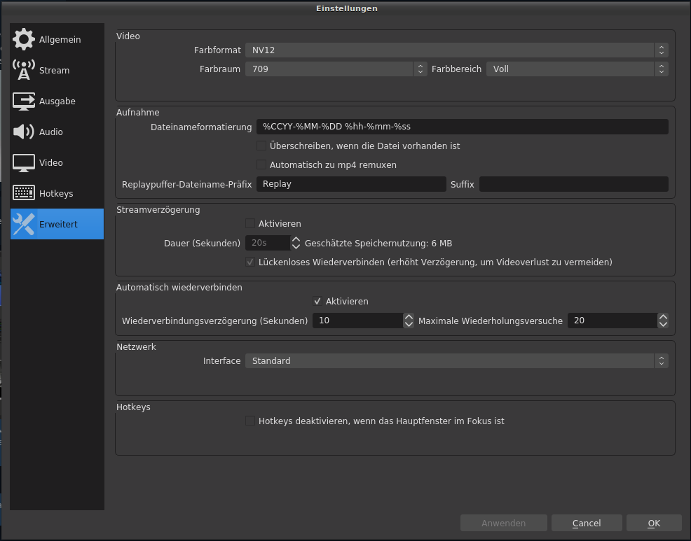 Pfad: OBS > Einstellungen > Ausgabe > Ausgabemodus Erweitert > Aufnahme