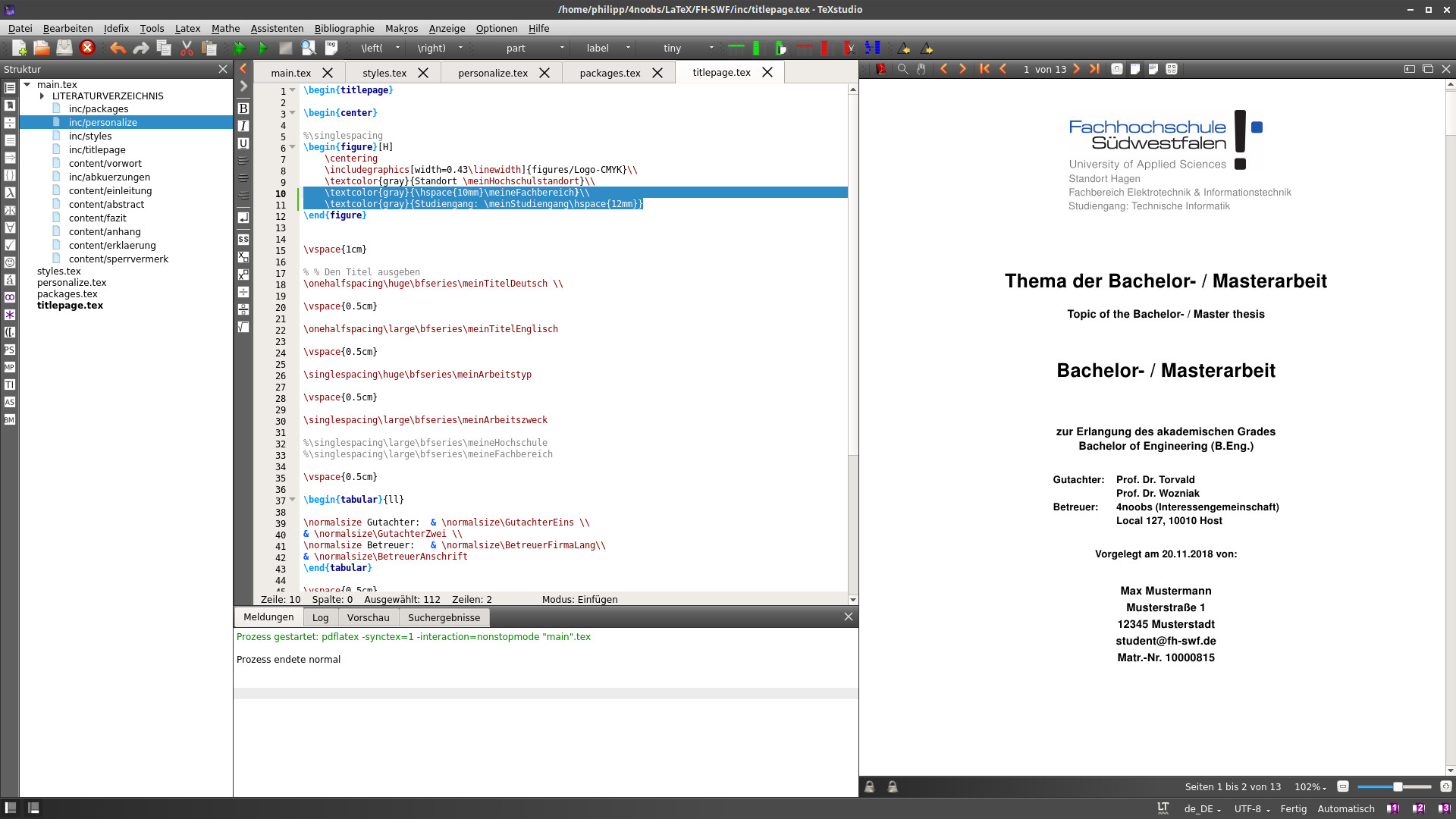Die Struktur dieser Vorlage ist selbsterklärend. Am einfachsten klickt man sich durch die Datei Ebene und schaut sich den Inhalt jeder .tex Datei genauer an.
